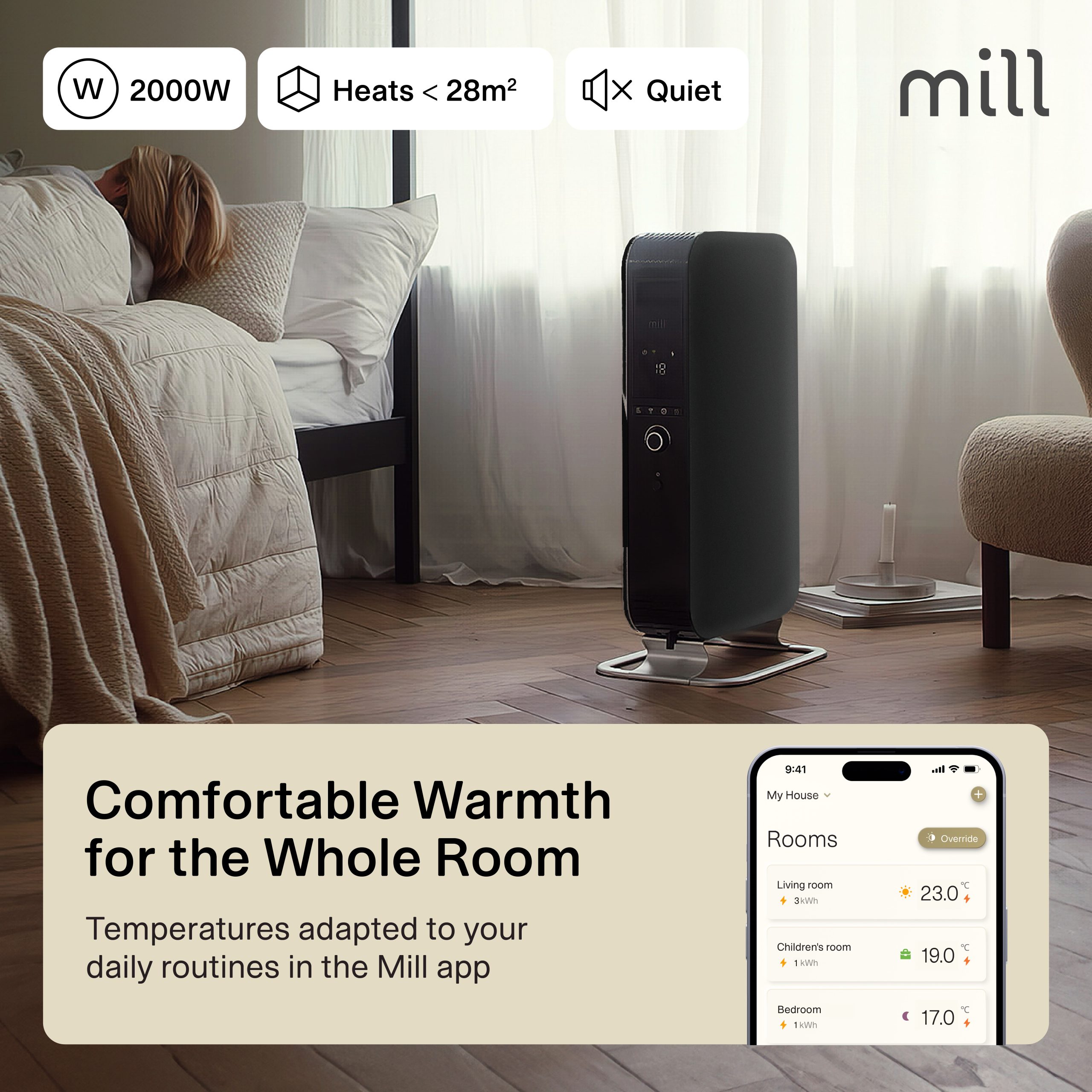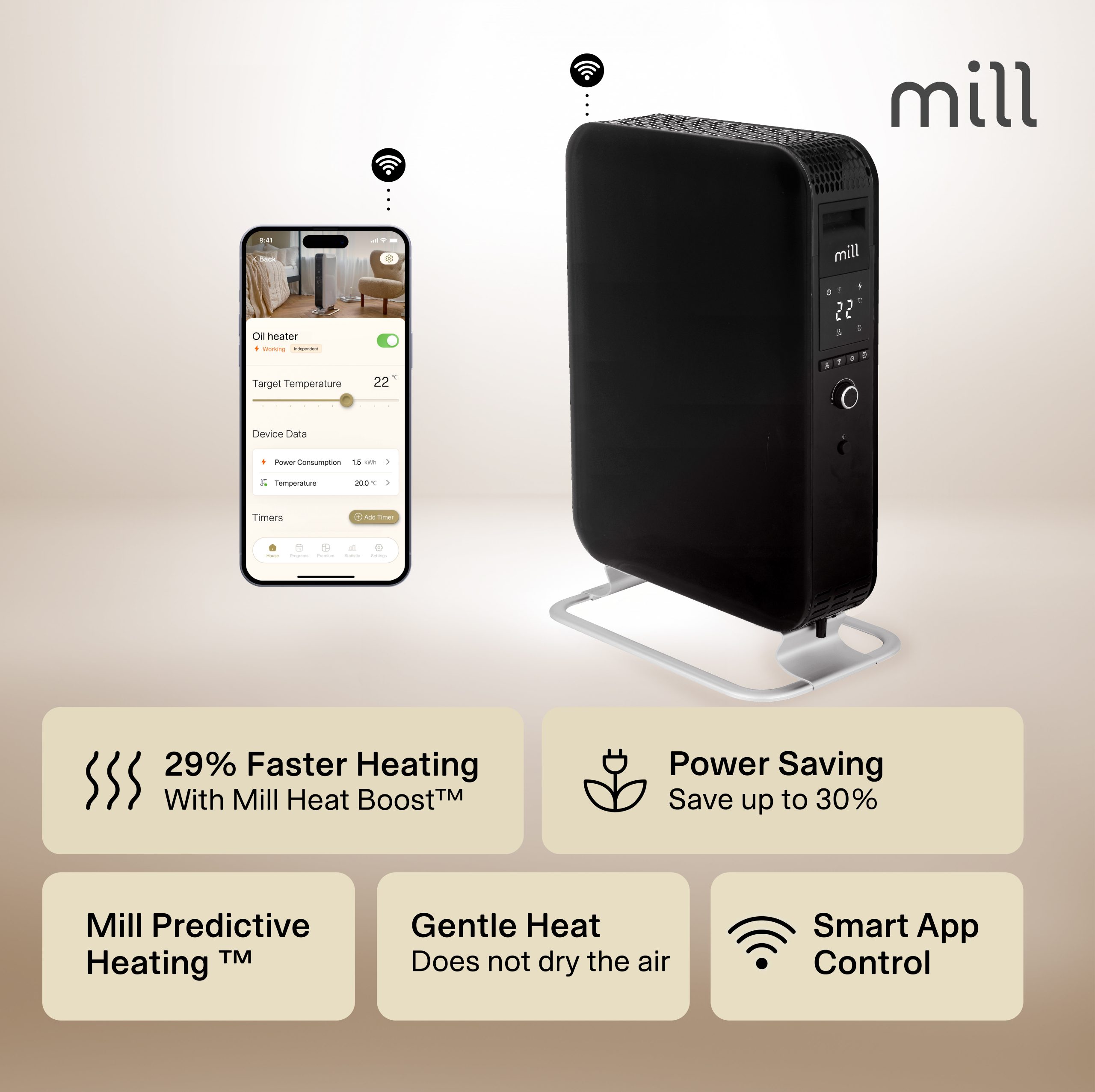 • Thermostat: WiFi + Mill App