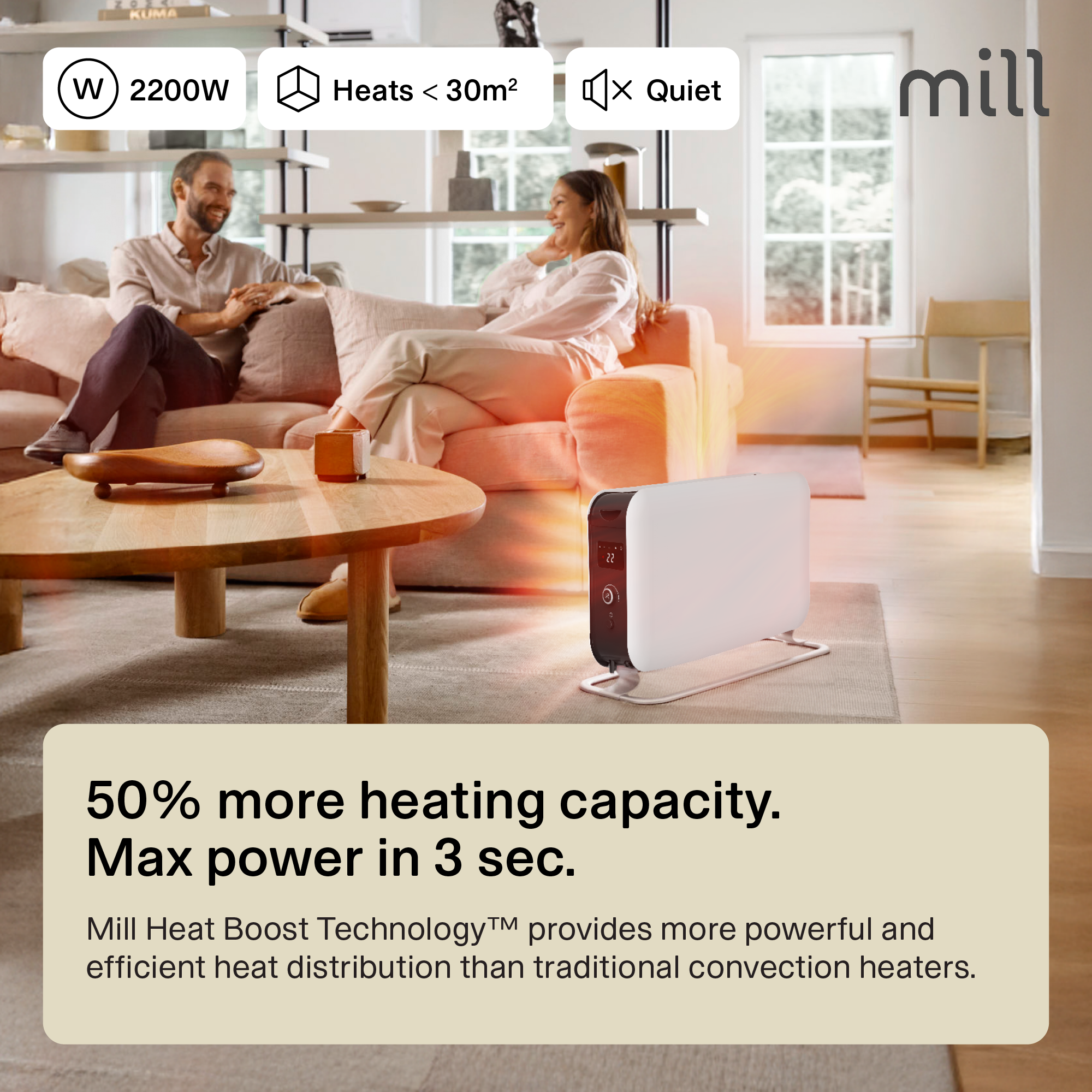 • Mill Heat Boost Technology™ – Fast and even distribution of heat throughout the room